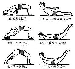 1. 腰背肌锻炼 腰背部肌肉韧带发达,腰椎间盘突出症继续发作发展的几率可下降80%,所以,腰部周围韧带,肌肉的锻炼,对于椎间盘突出的治疗恢复有着重要的意义。常见锻炼方法如图: