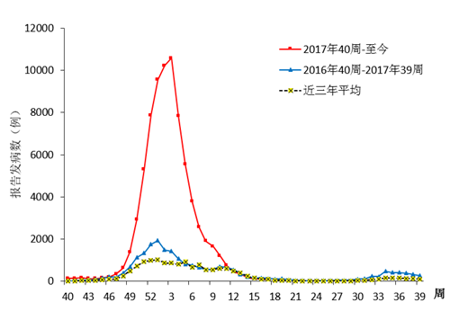 图3 流行性感冒周报告病例情况