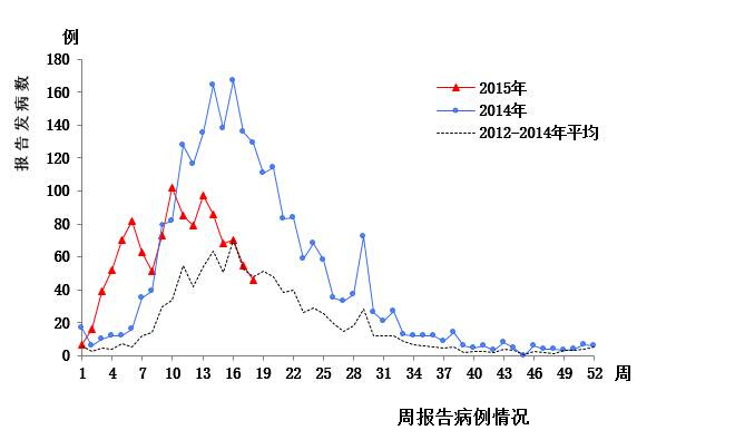 2015年第18周(2015年4月27日至5月3日),全市共报告法定传染病2162例,死亡1例。其中,乙类传染病共报告12种729例,报告病例数居前5位的病种依次为肺结核、痢疾、猩红热、梅毒和病毒性肝炎,共占乙类传染病报告发病数的86.28%。
