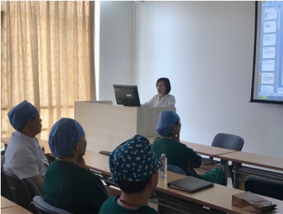2019年6月,随着炎炎夏日一起到来的,还有医保科如火如荼的医改内容培训工作。本次医耗联动综合改革涉及项目繁多,项目内涵详细,大兴区人民医院临床医务人员必须完全掌握,才能顺利进行今后的工作。为此,医保科在院领导的指示下,制定了全面的培训计划。在5场全员培训后,医保科还要对所有手术涉及的科室进行专科培训。6月3日到10日,医保科上午进行项目对照、维护工作,下午开始专科培训工作。杨老师为20个涉及手术的科室准备了具有科室特色的培训幻灯,开始了一科一科的专科培训,解答了临床科室的各种问题。粽香缭绕的端午节也在加班中匆匆而过。由于天气炎热,对照、维护、培训的工作压力巨大,短短两个月的时间,体重就减轻了10斤。科室同事开玩笑说这让本来就很纤细的杨老师看起来更加的 “小鸟依人”。