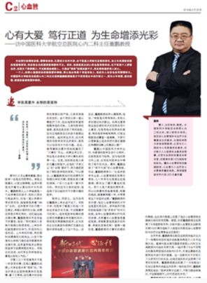在我国,医学临床科主任的选拔是非常严格的,只有“德智体”全面发展的医学人才方能担任此重任。董鹏教授很早就攻读了博士研究生,现在已是硕士研究生导师,不仅具备丰富的临床实践经验和突出的专项技能,还有良好的人际关系和综合协调全院关系及处理各种突发事件的能力。不过真正担负起心内二科主任的职责之后,董鹏教授也觉得任务不轻,他说:“以前做好自己就可以了,现在不光要做好自己,还得带好团队。心内二科全科的医疗、教学、科研、预防和行政管理工作都要做,同时还有我自己的手术、查房等工作。日常的不用说大家也很清楚,比如组织学术会议和疑难病例讨论会等,可谓是事无巨细。要安排得处处妥帖确实不易,说不累都是假的。但是既然院领导让我挑起这个重担,就一定要顶上,不辜负医院的期望。当然,也要感谢大家的配合和支持。”