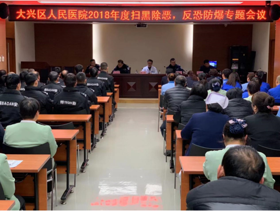 2018年12月20日,大兴区人民医院在6号楼医院联合林校路派出所共同召开“扫黑除恶”专项工作部署会,医院副院长张彬、林校路派出所副所长王俊领、巴德海等领导出席会议。会议由医院安保部部长侯国亮主持,医院保卫科、全体保安和协警人员及医院安全员参加了此次会议。