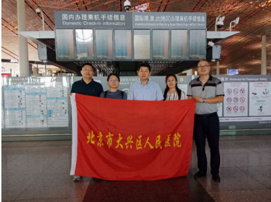 2018年8月31日下午,我院呼吸科常金来、肿瘤内科郭宏伟、超声科曹红书、神经内科张爽四名医生启程赶赴内蒙古乌兰察布市察右前旗人民医院。院长助理兼医务科主任方哲到机场送行。