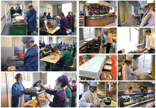 如果您常来职工食堂就餐,会惊喜地发现近来食堂饭菜品种越发丰富,而饭菜价格却下降了,一份清蒸龙利鱼仅售 10 元,半份清炒土豆丝仅售1.5元。为了能够满足全院职工的不同口味需求,还增设了牛羊肉、素食专柜,低盐低脂饮食专柜。