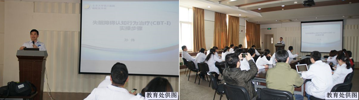 2016年3月11日,北大六院教育处在门诊五楼正谊厅举办了精神病理学与临床思维论坛,本次活动的主题为“失眠障碍认知行为治疗(CBT-I)实操步骤”。主讲人与主持人均为睡眠医学科的孙伟医生。北大六院临床医生、研究生、规范化培训住院医师及进修医生参加了本次论坛的学习和讨论。