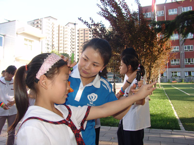 日前,参与北京残奥会城市志愿服务的北京同仁医院志愿者来到北京市盲人学校,与盲校的同学们共同聆听志愿者主题公益电影《微笑圈》,并将印有志愿者logo的特制月饼送给盲校的同学们,祝福他们中秋快乐。这些志愿者来自医院的20多个科室,为残奥会提供了相应的应急服务和信息咨询。