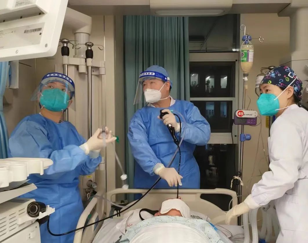 陈乾华快速赶到床旁,了解病情后,他紧急给患者气管插管,接有创呼吸机辅助通气,患者病情一度好转,但仍脱机困难。在该患者新冠核酸阳性的情况下,陈乾华不顾感染风险,依然坚持为患者完成了床旁气管镜引导下经皮气管切开术。术后,患者恢复良好,肺部感染明显好转,能间断脱机,至今生命体征平稳。患者的成功救治,让陈乾华格外兴奋和喜悦。“医者的最好褒奖,莫过于危重患者的救治成功。”他开心地说。