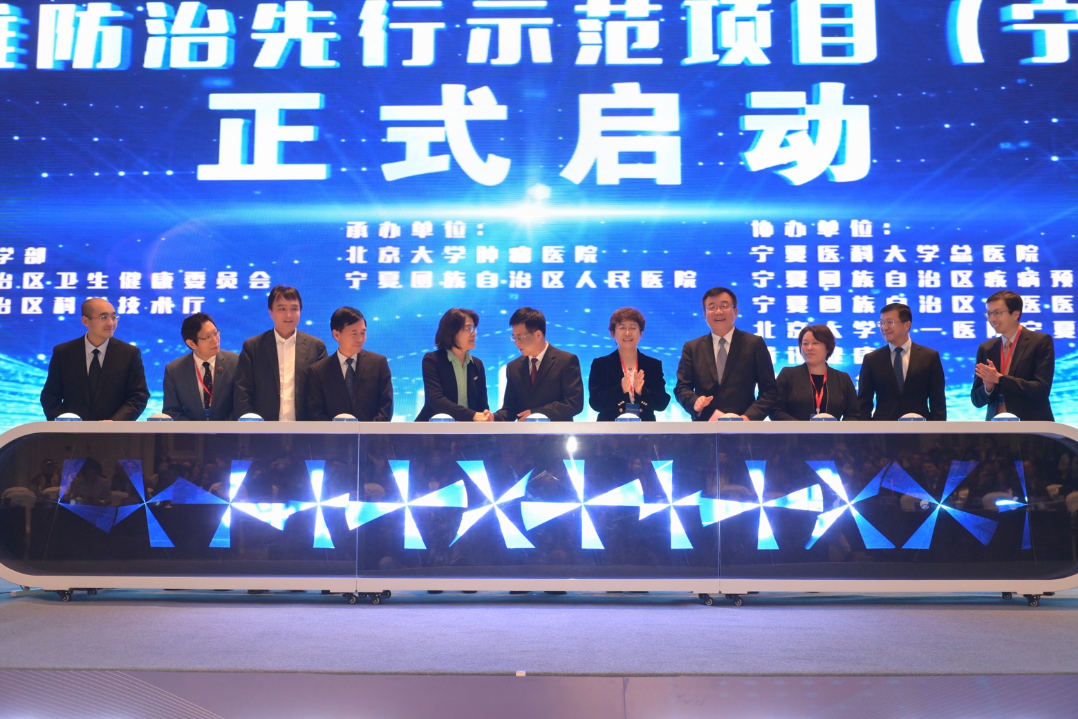 为深入贯彻习近平总书记“预防是最经济最有效的健康策略”的重要论述精神,扎实落实《“健康中国2030”规划纲要》、《健康中国行动(2019-2030年)》关于癌症防控的行动目标,2023年4月27日,由北京大学医学部、宁夏回族自治区卫生健康委员会、宁夏回族自治区科学技术厅主办,北京大学肿瘤医院、宁夏回族自治区人民医院共同承办的首届北大-宁夏“科技普惠 精准防癌”学术高峰论坛暨中国上消化道恶性肿瘤精准防治先行示范项目(宁夏)启动会在银川举行。