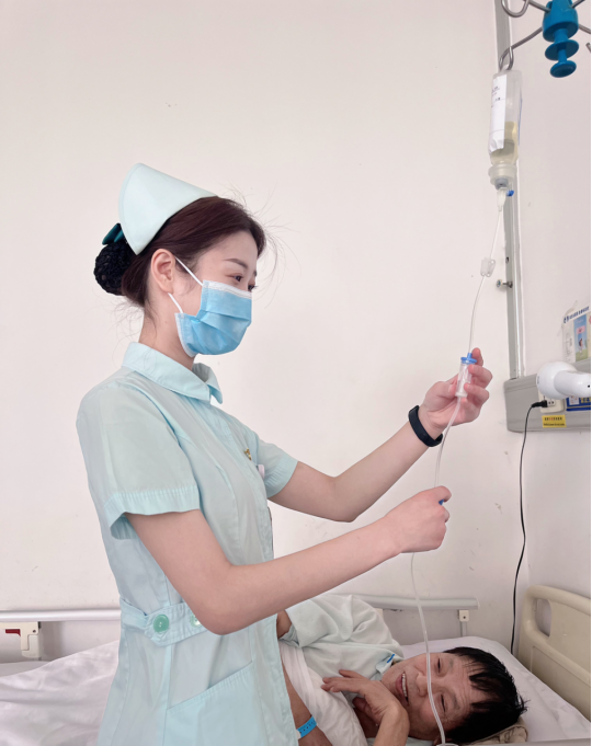 “萌萌你的手流血了。”,随着一个声音传来,患者突然醒悟,放松了下来。国萌萌尝试着轻声与她沟通,询问她的诉求。原来,患者责怪自己得了这么严重的病,使本不富裕的家庭雪上加霜。“我听闻之后,温声细语地对她进行心理疏导和安慰,不一会她安静休息了。”国萌萌表示,就这样,简单温馨的话语,拉近了护患之间的距离。