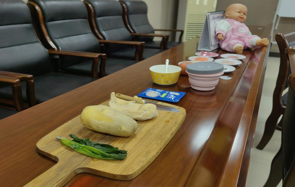 石景山区妇幼保健院健康教育科依据前期调研结果,在“六一”国际儿童节到来之际,举办以“婴幼儿辅食制作、小儿中医推拿”为主要内容的体验活动。此次“科学喂养 共童成长”主题活动在全区范围内招募10组适龄宝宝家庭参加,以“圆桌会议”小班课的形式开展,大家团团围坐,由石景山区儿童早期综合发展中心张庆丽主任进行授课。课上除了讲解儿童喂养的相关保健知识外,张主任还带领家长们现场学习辅食制作。并耐心地讲解各类常见食物中的关键营养素,各类辅食的添加顺序及注意事项,米粉的冲调比例等。授课由浅入深,一一解答宝爸宝妈们的疑惑问题,旨在将课本知识与实践操作相结合,帮助新手爸妈掌握更多的科学育儿保健知识。