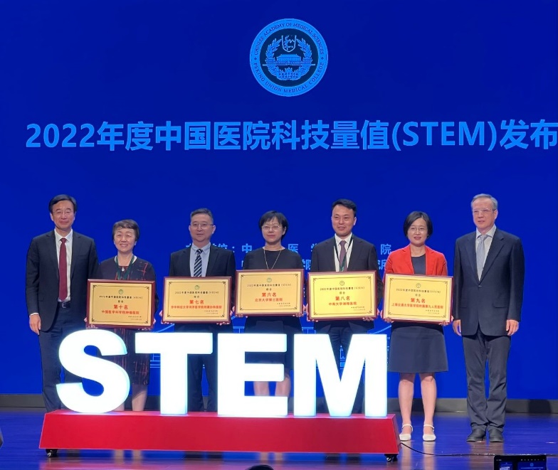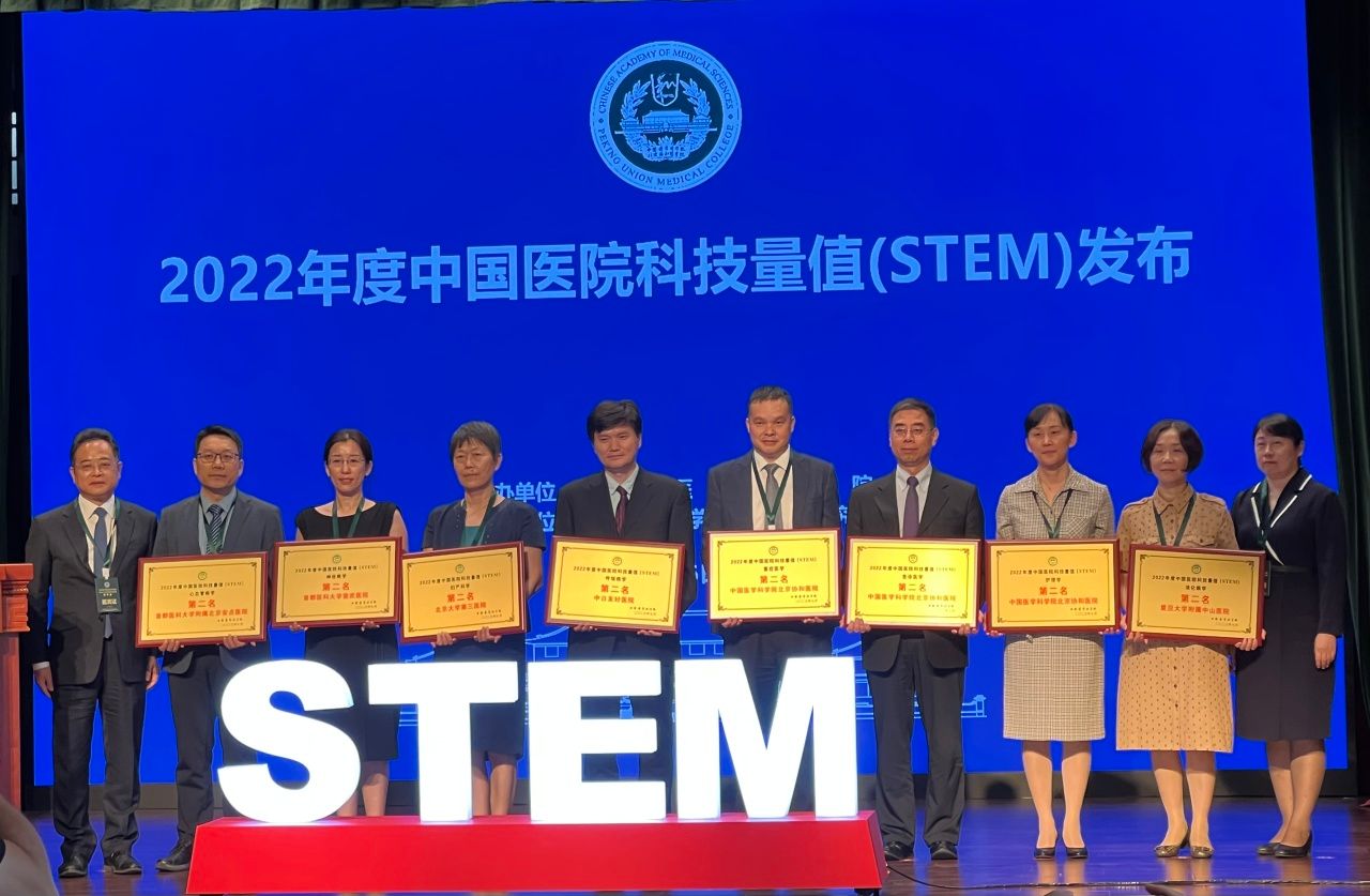 北京大学第三医院在2022年度中国医院科技量值(STEM)榜单中排名第六