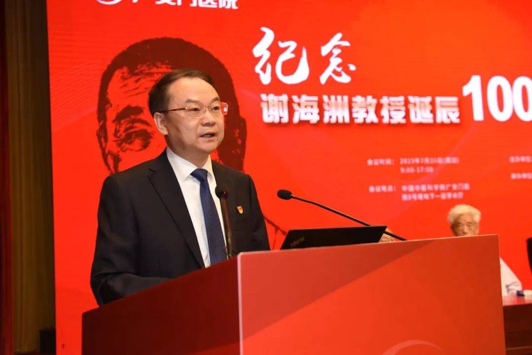 查德忠书记在讲话中指出,谢海洲先生是“医药共通”的临床大家、药学专家,为后辈留下了值得深入钻研的“知识宝库”。他强调,以此次研讨会为契机,要进一步弘扬谢老等老一辈中医大家热爱中医、钻研中医、发展中医的精神,进一步增强做大做强中国中医科学院的使命感,在建设健康中国的伟大征程中谱写新篇章。