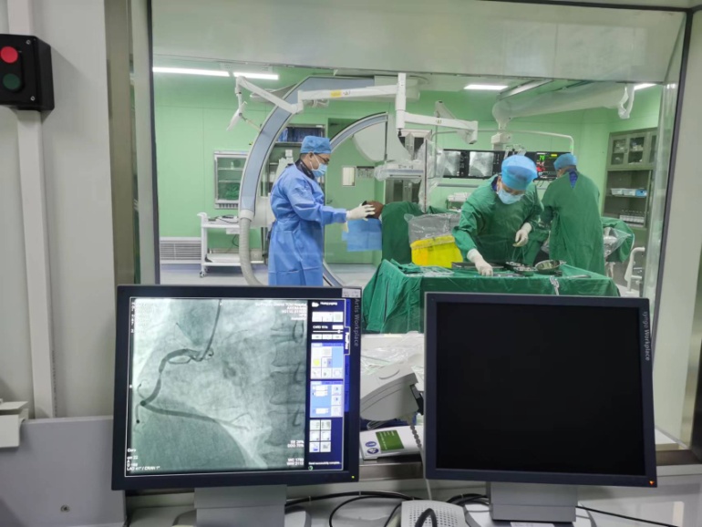 吴炜教授一大早就来到导管室,为冠心病患者行冠状动脉支架植入术。