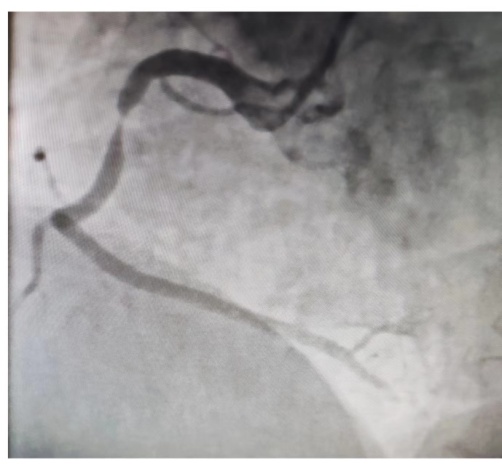 该患者右冠状动脉中段严重狭窄引起患者冠脉缺血,稍活动则诱发胸闷胸痛,冠状动脉造影显示患者右冠状动脉中段狭窄90%,冠状动脉支架植入术后,右冠状动脉残余狭窄0%,患者步行回病房,未再发作胸闷胸痛等症状。(冠脉造影见下图)