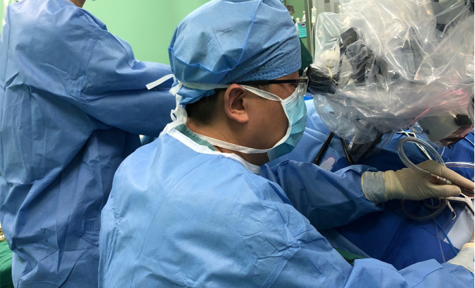 2月28日,牛建星主刀、团队通力协作,顺利为马先生实施了后颅窝减压、小脑扁桃体下疝畸形切除、四脑室正中孔探查和脊髓空洞蛛网膜下腔分流手术。