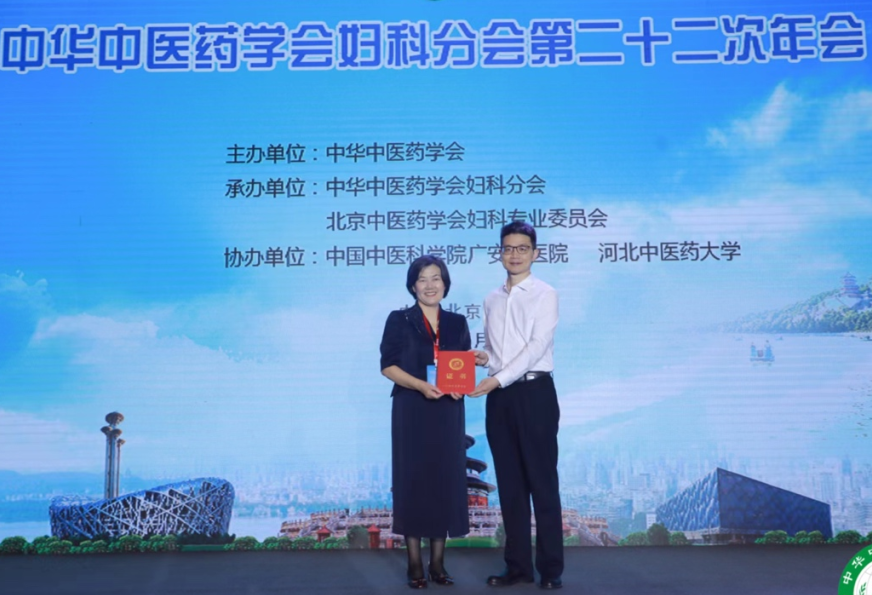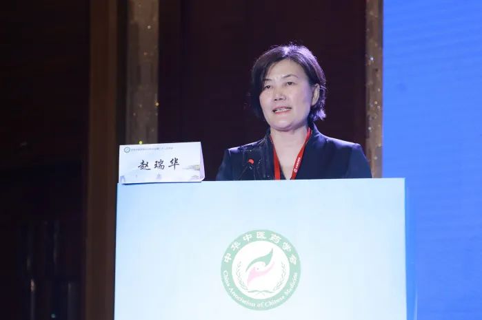 中华中医药学会学术部主任庄乾竹宣读第七届委员名单,中华中医药学会副秘书长陈俊峰为赵瑞华主任委员颁发证书。
