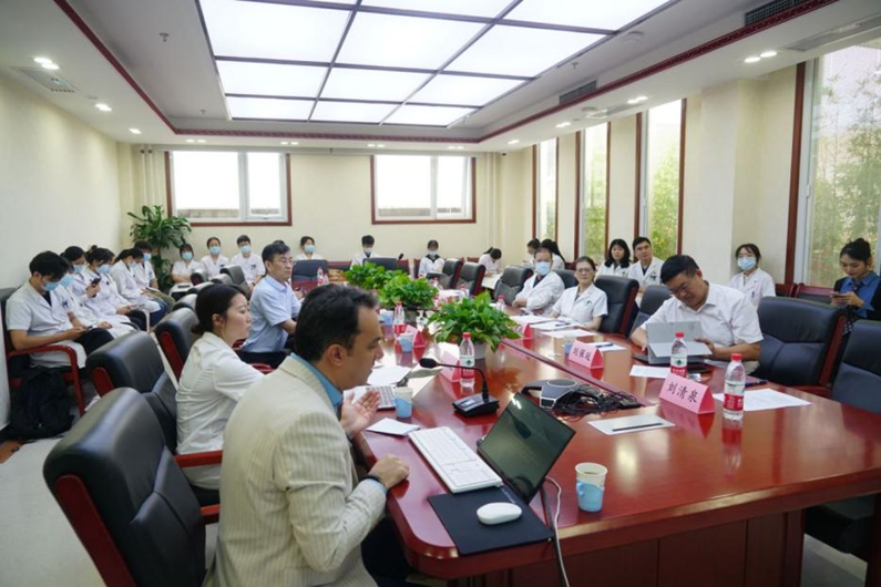 刘清泉教授介绍中医药传统疗法在重症病人的治疗的优势作用。与会专家座谈交流,为更好促进中国北京与伊朗德黑兰在传统医学方面的深入合作展开研讨。