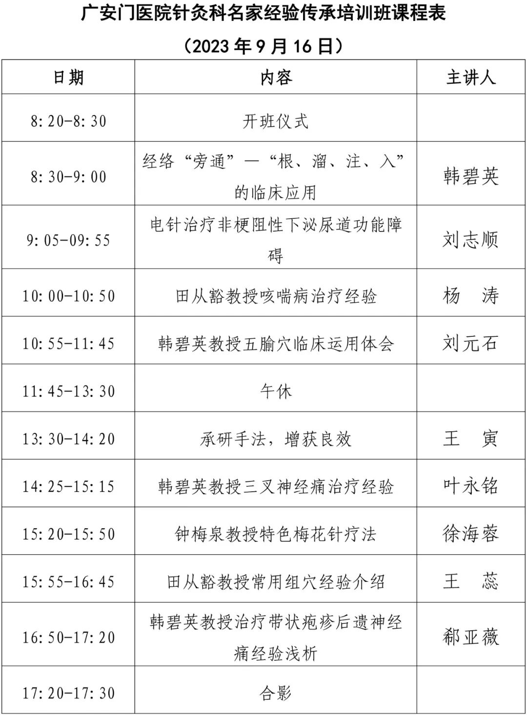 广安门医院针灸科名家经验传承培训班