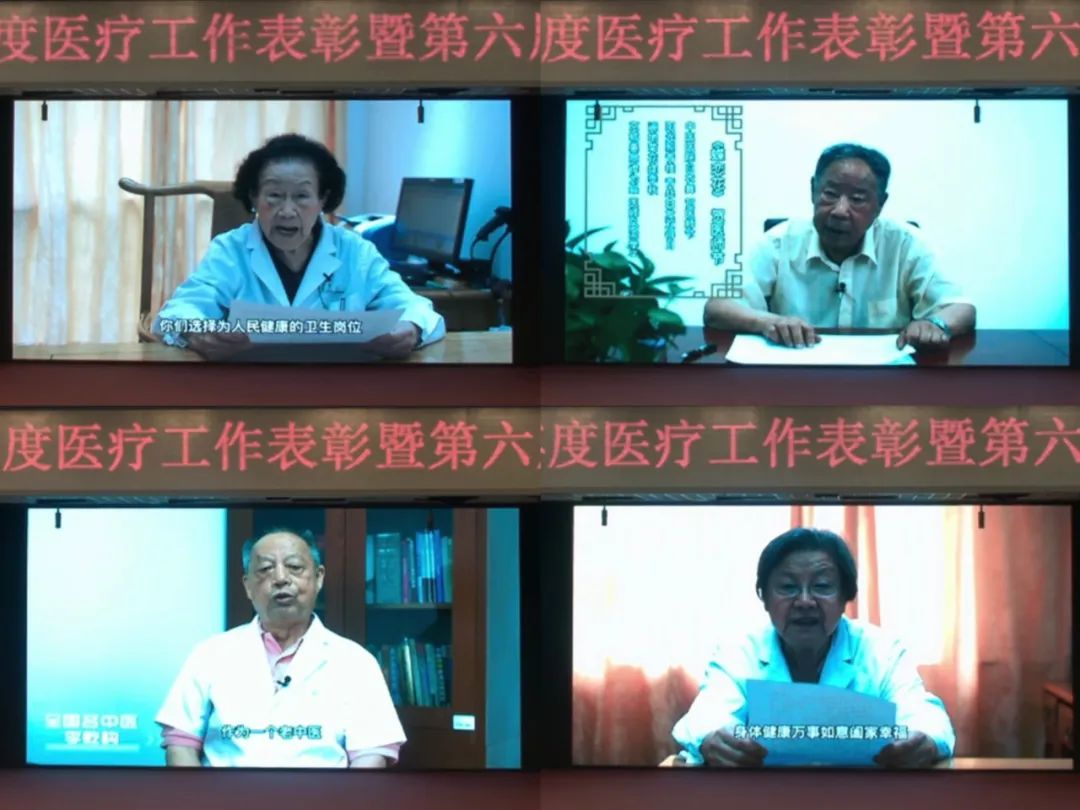 通过大屏幕,国医大师陈彤云教授,全国名中医张炳厚教授,全国名中医李乾构教授,首都国医名师黄丽娟教授满怀深情寄语青年医师。数十年的临床经验、行医感悟,汇聚成对青年一代中医人的殷切期盼:青年医师要坚定全心全意为人民服务的信念,做好临床工作的同时,积极开展医教研工作;要珍惜宽街中医平台,承传精华,守正创新,团结奋进,共同为医院的发展出谋划策,共同建设医院美好的家园。