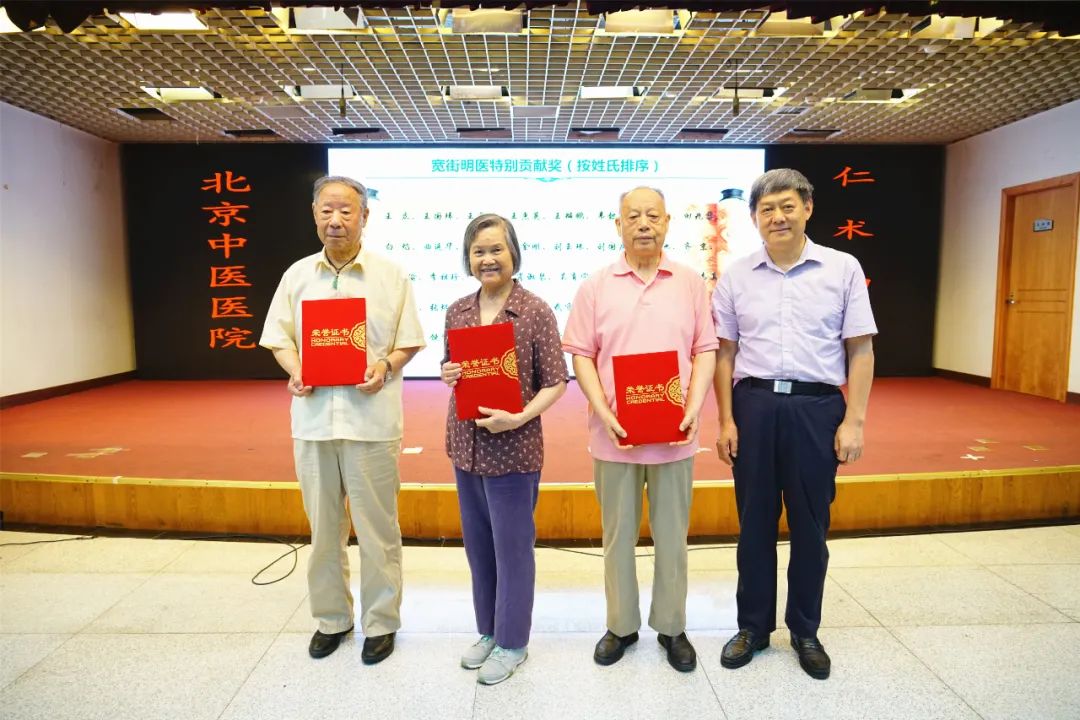 为感谢在过去的一年中辛勤工作在医疗一线的老一辈医师,医院特别授予王立等38名退休医师“宽街明医特别贡献奖”。获奖代表张炳厚、李乾构、韦懿馨三位老专家上台领奖。