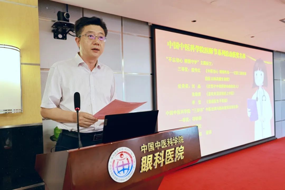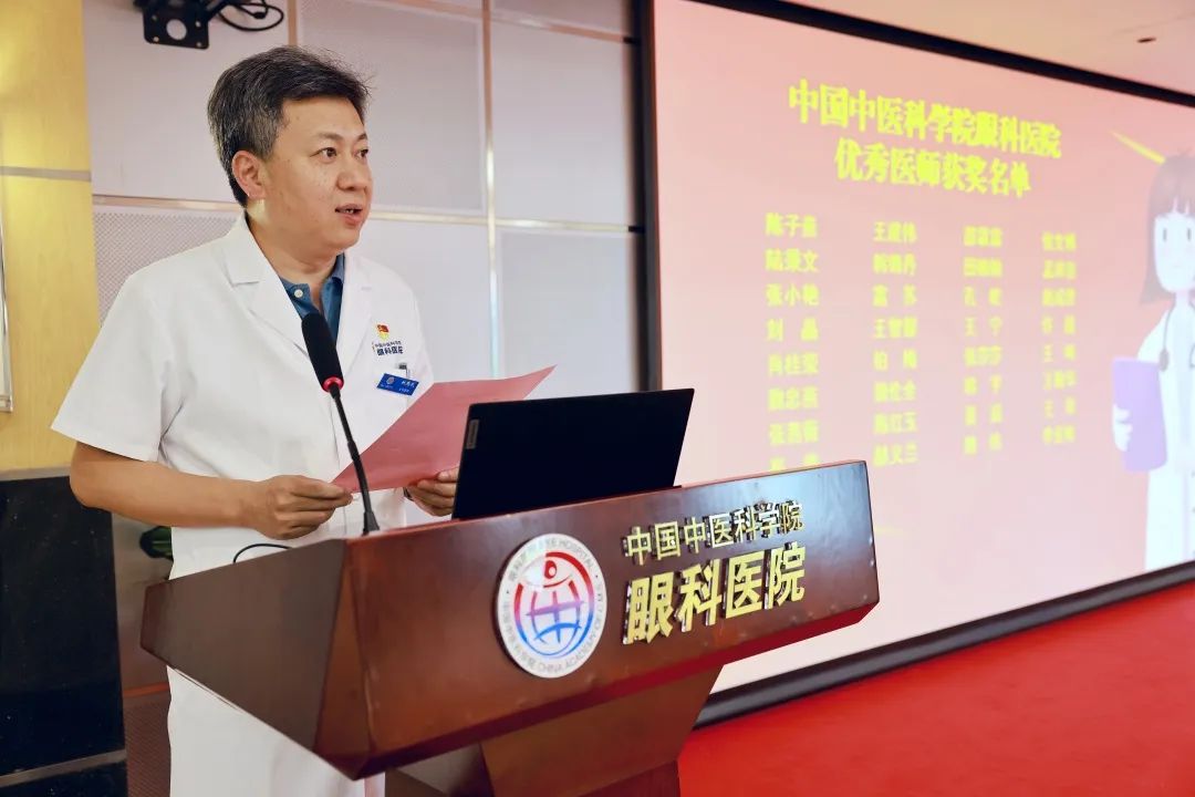 姚魁武宣读中国中医科学院眼科医院优秀医师表彰名单。