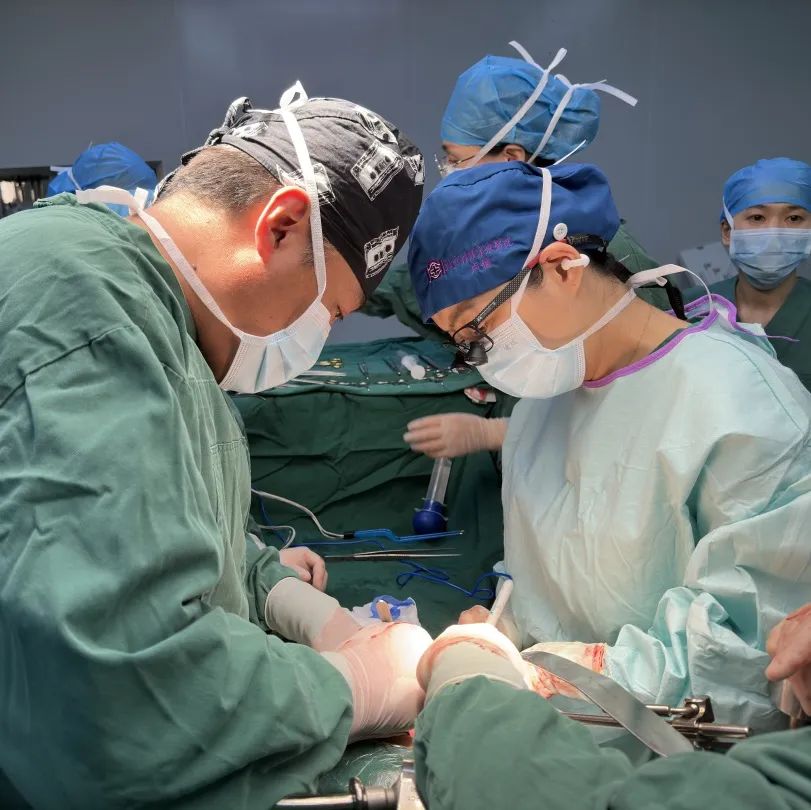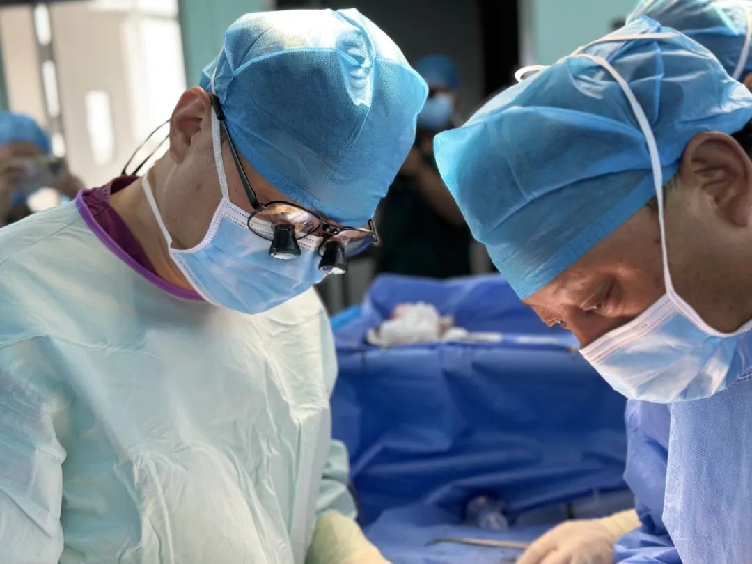 董家鸿(左)与卢倩(右)分别进行带教手术