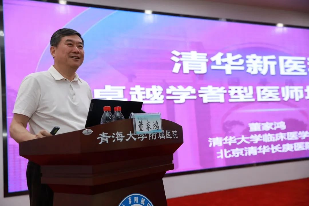 “卓越学者型医师培养模式,以培养具有‘高度人文情怀、丰厚科学素养和复合知识背景’,集‘良医、学者和领导者’三位一体的拔尖创新医学人才为目标。”青海大学附属医院“院士大讲堂”中,董家鸿正在进行讲座。