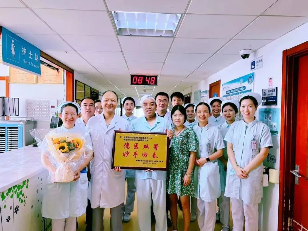 8月1日,从新疆远道而来的患者为神经外一科送上锦旗。患者身份为人民警察,熬夜、蹲起后会出现头晕,后查出为烟雾病。患者因韩宏彦主任医师的高超医术,跨越千里慕名来到航空总医院,接受了针对性治疗,已经顺利康复出院,恢复良好,“德医双馨、妙手回春”是患者在航空总医院的真实感受。目前他已回疆继续投身警察事业服务人民。