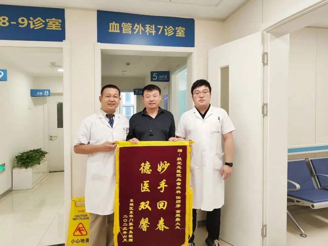6月28日,血管外科门诊时意外惊喜收到一位患者的锦旗。患者患双腿静脉曲张15年,下肢外观如蚯蚓,步行活动后酸胀不适,后出现发热疼痛,曾去京城某著名三甲医院询问,需要排队安排院外自费手术,后慕名来医院特需血管外科找任师颜主任医问诊。6月20日行微创CHIVA手术,阻断返流的静脉血流,清除血栓,纠正异常血流动力走向。术后即自己穿上衣服,步行返回病房,观察一宿后出院回去工作。按北京医保政策治疗后,自费少,手术后基本上不影响生活工作。患者说,“手术后步行轻松,不影响生活工作,且费用低,真心感谢任医生。”