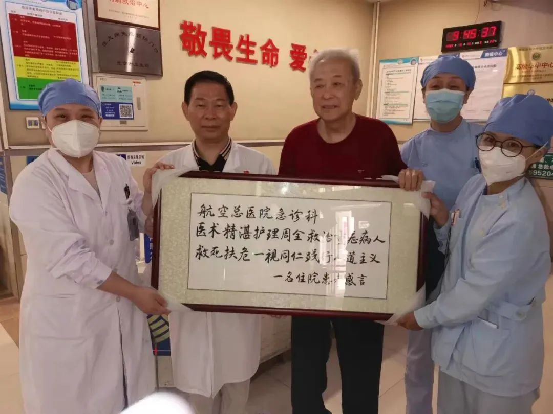 8月18日,医师节前夕,一名老年患者为急诊科送上牌匾,上面写着自己在住院急诊留观期间的深切体会。6月10日凌晨2点多,急诊科接受了这位发热5天生命体征不稳定的老人,老人有多年糖尿病,冠脉支架术后并有多种基础疾病,进一步检查发现这次是感染性休克肝脓肿,可能危及生命。急诊科立即给予了针对性治疗,病情得到稳定,并在后续的治疗里尽心尽责,全力呵护,经过了近2月的努力,所有的急性问题都得到解决,慢病控制平稳,老人顺利出院。