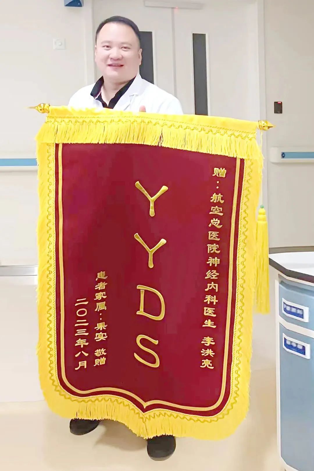 8月2日,患者家属为神经内一科送上网络用语“YYDS”锦旗(“永远的神”拼音缩写)。该患者有20多年糖尿病动眼神经麻痹病史,查房时发现她的抽屉里摆着两盒烟,劝她别再吸烟,她挥舞着手说:不,我都六十多岁了,也就这么点爱好。后续,李洪亮医生耐心宣教,多日细致、周到解释,持续地告诉她吸烟的危害,最终,患者被打动,戒掉了不良习惯,病情也持续好转。
