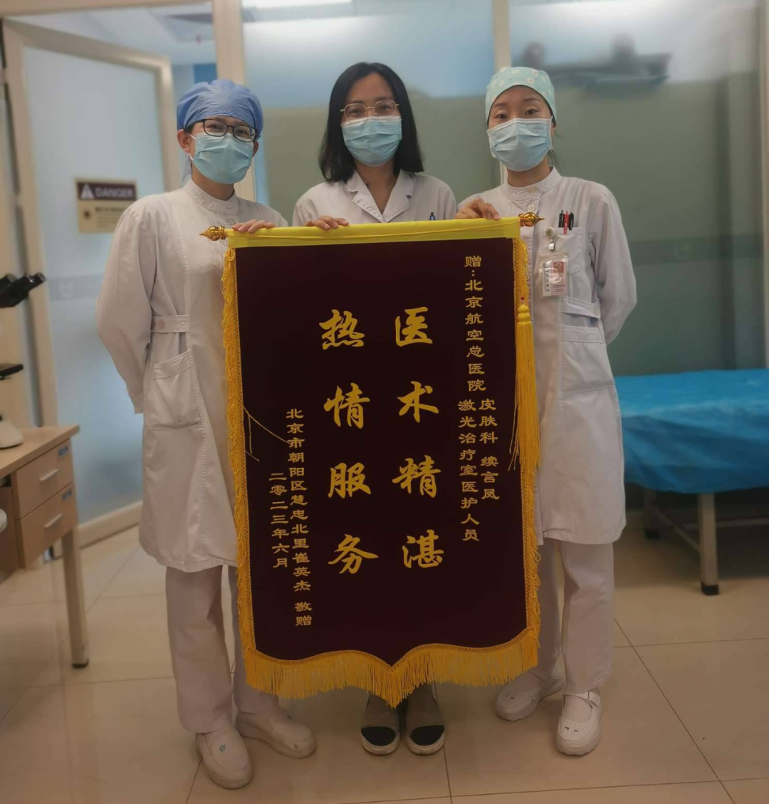 今年6月,皮肤科收到一面锦旗。患者为79岁女性,因左腰背红斑水疱伴疼痛就诊,后诊断为带状疱疹就诊。接诊医生续言凤大夫细心给患者交代该病的发病原因及治疗方案,并鼓励患者信心,提高了患者的依从性,患者每天于治疗室行氦氖激光治疗,治疗室护士耐心关注患者病情变化,经过治疗患者最终完全康复。