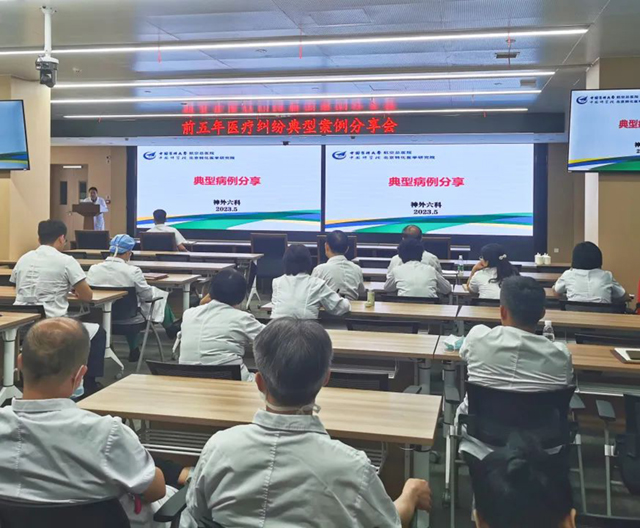 分享会围绕航空总医院既往五年已决纠纷案例情况,由各当事科室主任从“患者基本治疗情况、患方异议、科室讨论意见、第三方认定意见及损失、心得分享”等五个方面,对近30余件纠纷案例进行专业深入分享。
