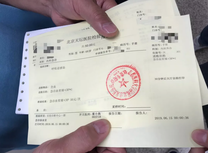 6月15日零点过后北京天坛医院开出第一张检验申请单