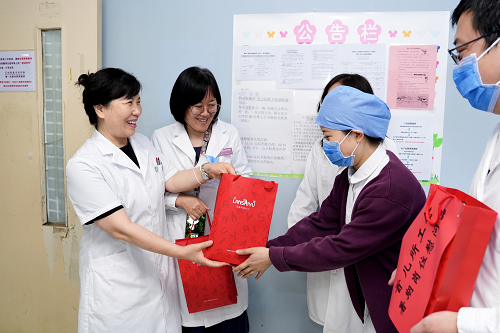 The visiting team paid a visit to medical workers at Huilongguan Hospital.