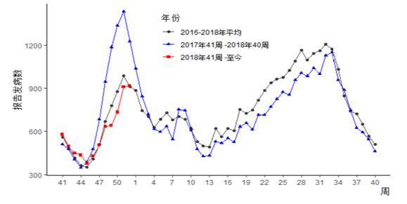 インフルエンザは、インフルエンザウイルスを病原とする急性気道感染症である。流行が周期的、季節的に現われてくる。北京市では、冬はインフルエンザが流行する季節である。元旦前後、例年流行のピークになる傾向がある。目下、北京市ではインフルエンザウイルスの活発の度合いが比較的に高いが、全体的に2017年ー2018年の流行期間より低い。しかも、二級以上病院の監視データによると、インフルエンザ様症状(Influenza-like illness, ILI、インフルエンザの症状に合致する病例)の病例数は去年の同時期より少ない、季節的に現われてくる特徴に合致する(図1をご参照ください)。近年来、北京市医療機構の監視に関する技術能力のレベルが引き続き向上するため、インフルエンザの確診病例数が増加する(図2をご参照ください)。