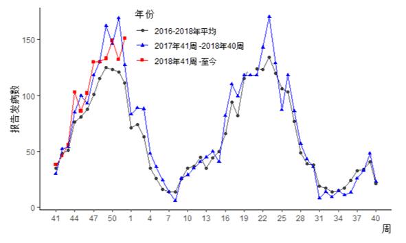 2018年第52週(2018年12月24日から2018年12月30日まで)にわたり、全市では法定伝染病合計17種13732例、死亡7例があると報告されている。報告病例数の上位5位の病種を以下のように示す:インフルエンザ、その他の感染性下痢、肺結核、猩紅熱と梅毒。合わせて報告された法定伝染病の発病数の96.85%を占める。