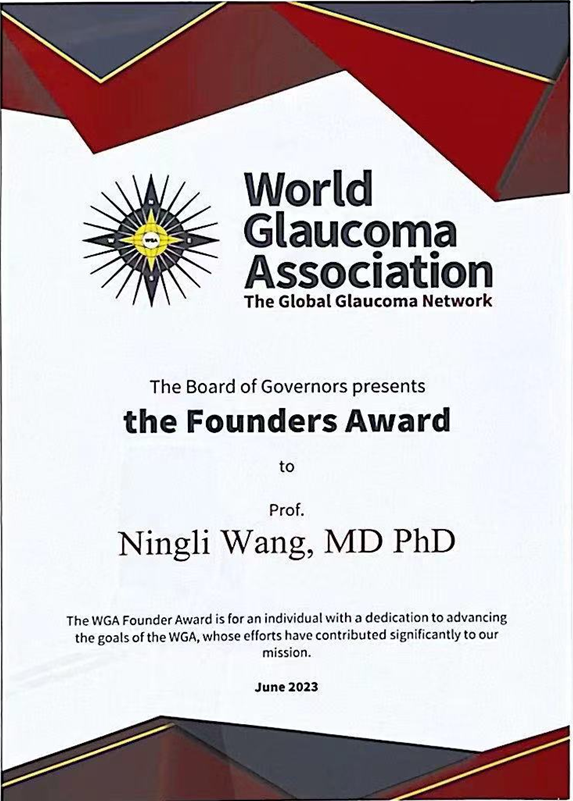 WGAの共同設立者の一人として、王寧利教授はWGAの設立以来、執行委員会のメンバーを務め、WGAの発展と成長に多大な貢献をしており、国際的な緑内障学術の発展にも多大な貢献をしている。