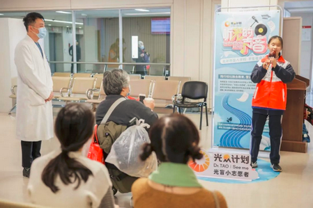 「守護天使」ボランティアサービスは外来患者の指導、患者の付き添い、精神的な慰め、健康教育、その他のボランティア・サービスを通じて、患者に奉仕し、心を温め続けた。北京朝陽病院は「光明天使」ボランティアサービス・プロジェクトを開始し、朝陽病院の眼科診療エリアで、盲人学校民族音楽部の若いボランティアが二胡、琵琶、葫蘆糸などの演奏を通じて、緊張と不安でいっぱいの眼科患者の心を癒した。