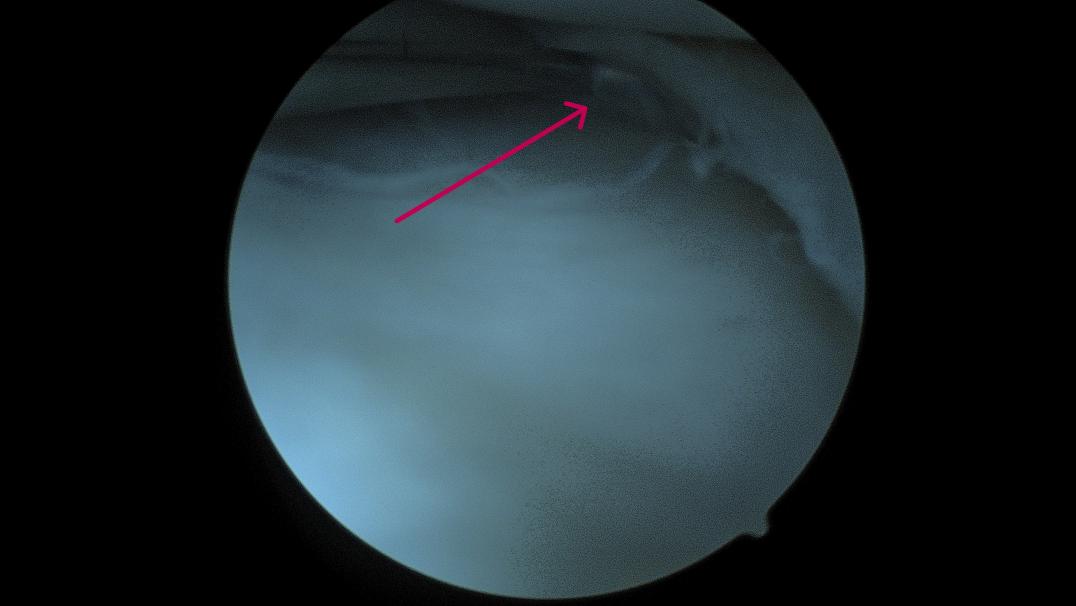 李女士,37岁,右膝关节疼痛伴活动受限3月,伴有跛行,上下楼梯疼痛,有蹲起困难,有卡感和交锁,门诊核磁检查提示:半月板撕裂。门诊以“右膝半月板撕裂”收入院。完善术前检查,明确无手术禁忌症后,应用缝合器技术将撕裂半月板缝回它原本的位置。