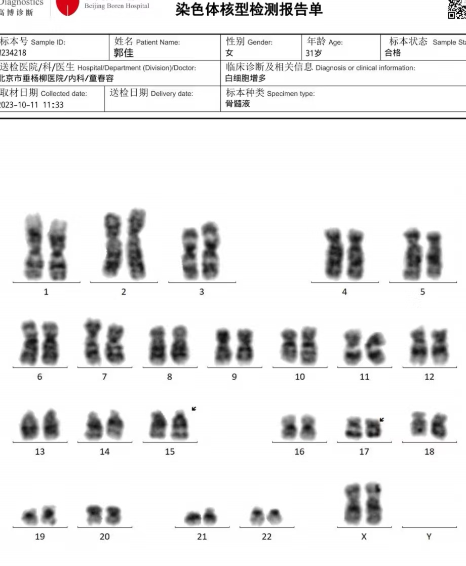 患者为年轻女性,由于“间断发热1周余、发现白细胞增高、血小板减少1日”来我院血液科门诊就诊。血常规提示,外周血可见到异常细胞!且同时患者凝血异常!紧急收住院后,行骨髓象、免疫分型、融合基因、染色体等检查,很快确诊为急性早幼粒细胞白血病(高危)。让人揪心的是,患者住院时已经合并弥散性血管内凝血(DIC)!随时有脑出血或其他脏器出血、血栓危及生命的可能。立即给予患者全反式维甲酸联合砷剂诱导分化治疗。但更吓人的是,经过诱导治疗,患者的白细胞计数急速上升,从治疗前的白细胞计数10×109L,很快升至60×109/L!凝血异常及低纤维蛋白原血症越来越重!出血风险越来越大,患者生命危在旦夕!