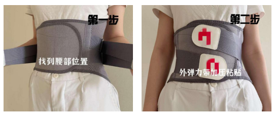 弹力腹带可以通过加压减少腹部内脏积聚的血容量,促进静脉回流和增加心输出量,从而达到调节体位性低血压的作用。对于体位性低血压的老人可选择透气性及舒适度较好的弹力腹带,日间活动时佩戴于腰腹部,夜间睡眠及卧床休息时解下即可。弹力腹带使用方法简单易行(如图所示),佩戴松紧度以舒适为宜,适用于老年人在家中自行使用。