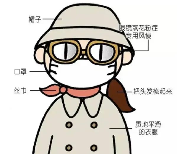 (3)尽量不穿易黏附飞絮及花粉材质的外衣(比如针织、毛料衣物);