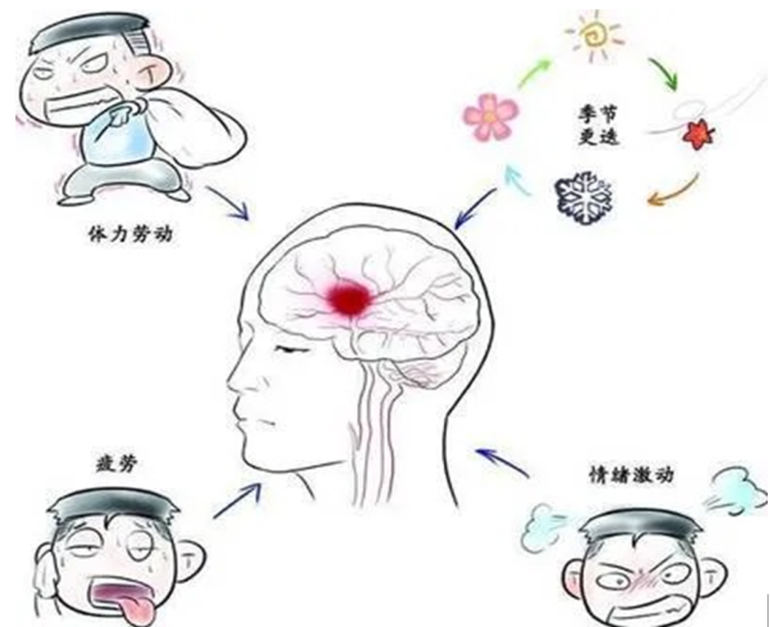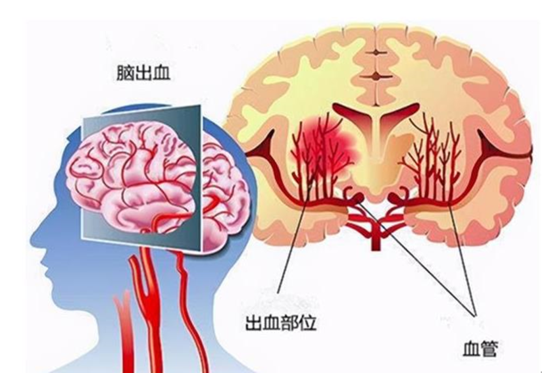 脑出血是指非外伤性脑实质内血管破裂引起的出血,占全部脑卒中的20%~30%,急性期病死率为30%~40%。发生的原因主要与脑血管的病变有关,即与高血脂、糖尿病、高血压、血管的老化、吸烟等密切相关。常见诱因有情绪激动、费劲用力等,脑出血十分凶险,早期死亡率很高,幸存者中多数留有不同程度的运动障碍、认知障碍、言语吞咽障碍等后遗症。