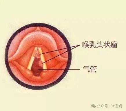 乳头瘤病的最主要表现是逐渐加重的喘鸣之后出现声音嘶哑,纤维鼻咽镜是本病最灵敏的检测手段,通过该检查可以观察气道的开放程度以及声带的活动能力,进而判断是否需要进行手术。
