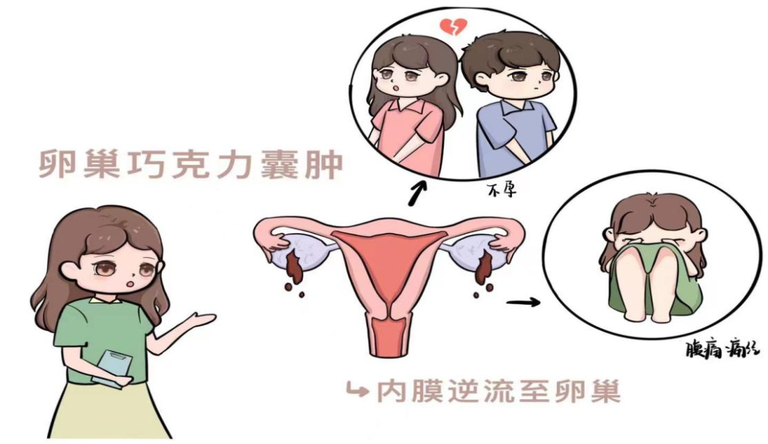 这种囊肿以其巧克力色的外观而得名,并且经常会导致痛经、盆腔痛、月经紊乱等不适症状,严重时可导致不孕。