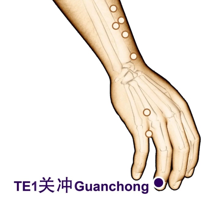 如果是先兆中暑或轻症中暑,出现头晕、心慌等症状,可以尝试揉按关冲穴。关冲穴是手少阳三焦经,在手部无名指尺侧,也就是无名指的指甲缘外侧。具有泻热开窍的作用,临床上常用于治疗热病等症状。每次揉按关冲穴1分钟左右。