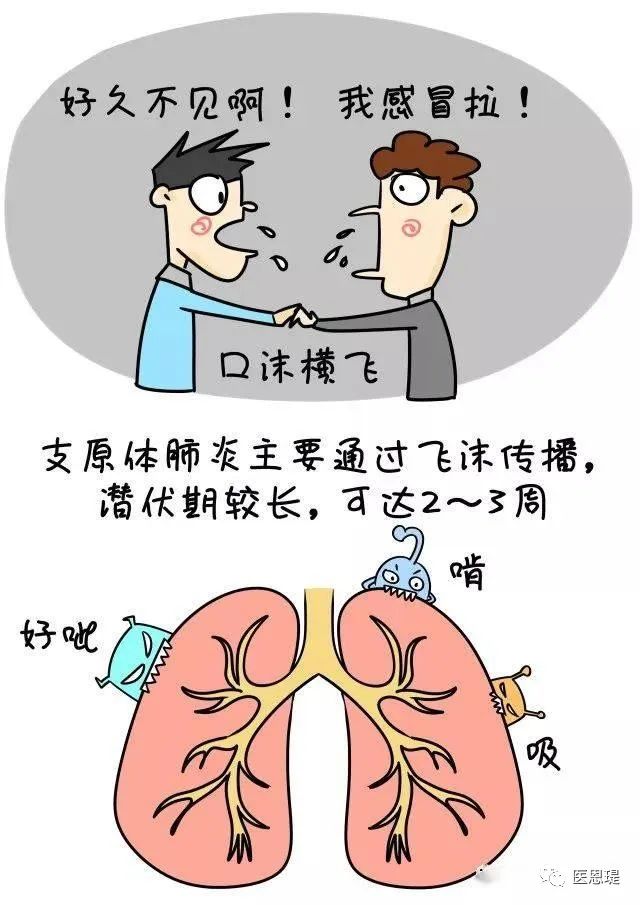 支原体是一种特殊的微生物,介于细菌和病毒之间,是目前已知能独立生存的最小微生物,75%医用酒精和含氯消毒剂均可以杀灭它。引起肺炎的叫做肺炎支原体,除了肺炎,还能引起上呼吸道感染或支气管炎,此外还有一部分无症状感染者。肺炎支原体是急性呼吸道感染的重要病原体,人群普遍对它易感,但多发于5岁以上儿童和青少年,肺炎支原体主要通过飞沫传播,在咳嗽、打喷嚏、流鼻涕时的分泌物中均含有致病的支原体,从而引起传播。