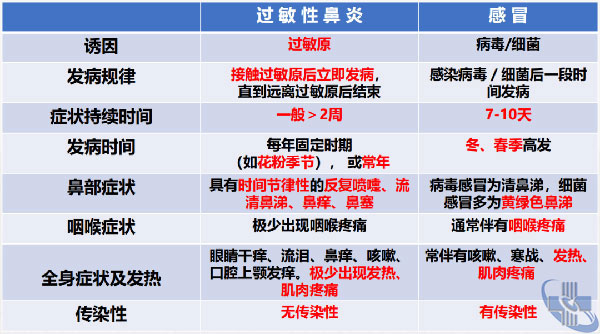流感和过敏性鼻炎都会出现鼻塞、打喷嚏、流鼻涕等症状,想要对症治疗,鉴别清楚是关键。以下几点可以帮助大家简单鉴别: