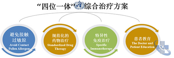 因此,在过敏性疾病治疗方面,应遵循“防治结合,四位一体”的原则和策略,即避免接触过敏原、规范化药物治疗、特异性免疫治疗和患者教育等方式,通过规范化的综合防治,达到过敏性疾病症状有效控制的目的。